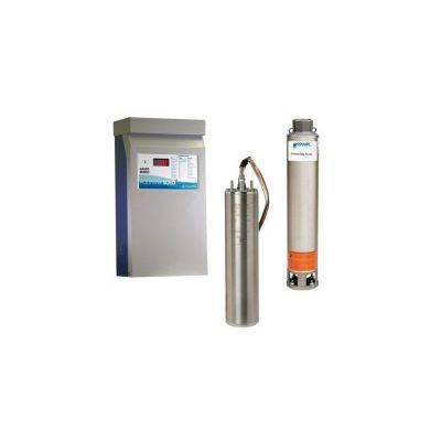 A variable speed controller complete with a water end (pump) and three phase motor conveniently packed in one carton for installer convenience. Kits are available with 2, 3 or 5 HP controllers and motors from 1.5 to 5 HP. They feature pump/motor combinations sized for high speed operation, units are configured to operate between 30 and 80 hertz.