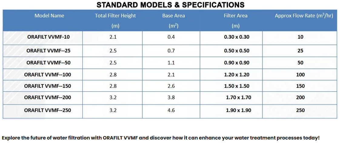 With ORAFILT VVMF, ORAIPL continues to lead the way in water treatment innovation, providing solutions that are not only effective but also environmentally responsible. For industries, municipalities, and residential applications alike, ORAFILT VVMF offers the perfect blend of performance, reliability, and sustainability.