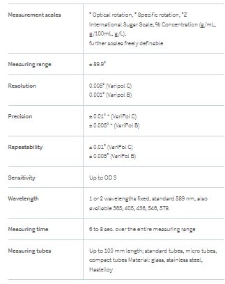 VariPol the Compact Laboratory Polarimeter. The VariPol takes the proven SuH technology to a new level combining it with new innovations and all advantages of the VariFamily. The new design has nearly half the size of our earlier models packed with new features and highly integrated hardware. The experience of over more than 150 years in polarimetry is reflected in all components like AWC, the fortified Aluminum core, the built in quality indicator of samples as well as the check of calibration standards. The 100mm sample room is optimal for the needs of pharmaceutical and chemical laboratories.