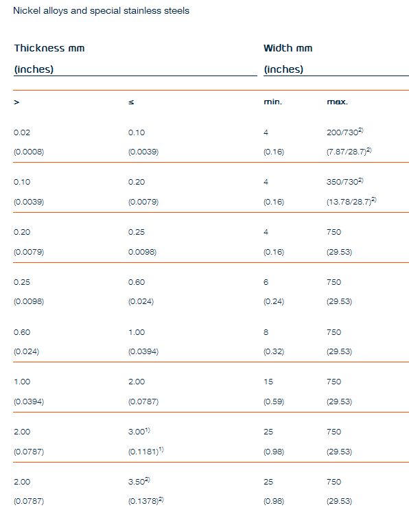 - for thicknesses between 0.02 mm and 0.20 mm (0.0008-0.0079 inches) Also available: Coil sheet, length 250-4,000 mm (9.8-158.5 inches)