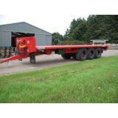 Lengths from 25ft to 37ft. Eight, ten, and twelve box trailers. Box section chassis, bearers, and chimes/side raves. Chimes flush or raised. Commercial axles. Multileaf spring drawbar. Multileaf suspension with central greasing. Commercial axles in tandem and tri-axle configurations. Full LED lighting including strobe beacon. Strap fixing points and 5/8 inch rope hooks. Rope box and cover tray. Optional galvanised box pusher and side step.