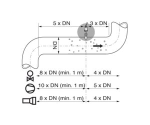 For the assembly of the sensor, the installation location is specified in accordance with the conveyed inlet and outlet paths. The socket is welded on at the specified installation location and then a borehole of 20 mm is drilled through the socket and through the line. The sensor is then adjusted to the wall thickness, inserted and fixed with the help of the coupling nut. The distance between sensor and analysis unit can be a maximum of 300 m.