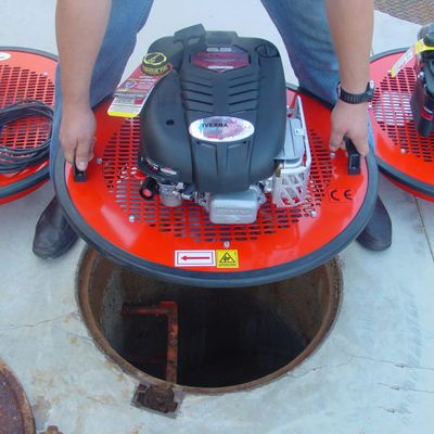 Pozovent is an air blower for confined spaces. Easily adaptable to a manhole of 600 Ä 800 m0. Pozovent it’s an autonomous equipment which does not need a generator and allows users to work with a clean and a complete decontaminated air.