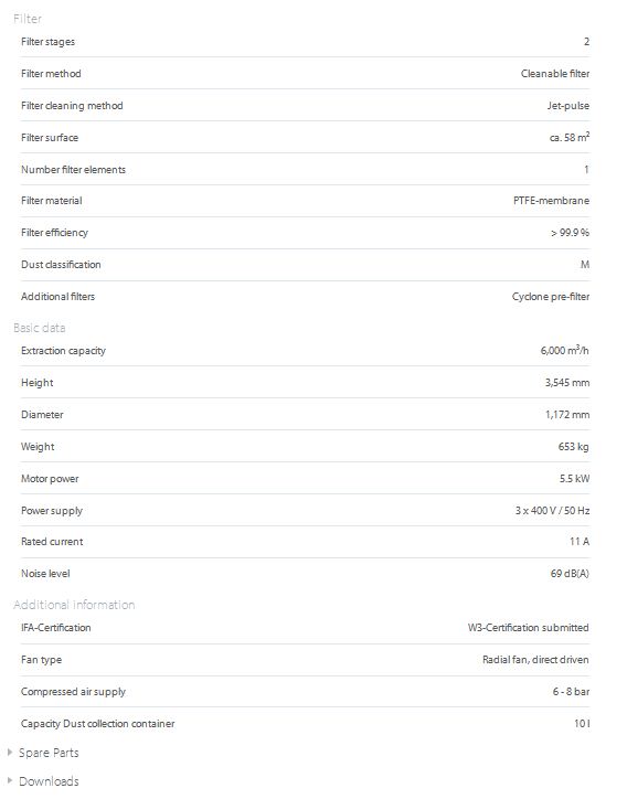 - Permanent operation by means of automatic dust disposal in dust collection bin