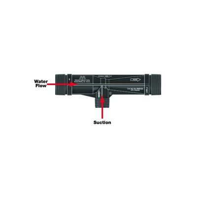 When pressurized water enters the injector inlet, it is constricted toward the injection chamber and changes into a high-velocity jet stream. The increase in velocity through the injection chamber results in a decrease in absolute pressure, creating a vacuum, thereby enabling an additive material to be drawn through the suction port and entrained into the water stream. As the jet stream is diffused toward the injector outlet, its velocity is reduced and it is reconverted into lower pressure energy.