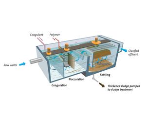 - Coagulation — raw water is thoroughly mixed with a coagulant, a chemical used to remove suspended solids from the water in the first stage of sludge treatment.