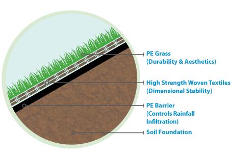 VersaCap is an erosion-resistant, reusable intermediate engineered turf cover that reduces operational headaches and allows for increased gas collection efficiency before final closure. Comprised of an engineered turf and permanently attached to a high strength polymer backing, VersaCap® is an aesthetically pleasing, intermediate cover for landfills designed to eliminate leachate production and erosion at the source while properly conveying gas emissions and improving gas collection efficiency. This dramatically lowers maintenance and operational costs over the life of the landfill.