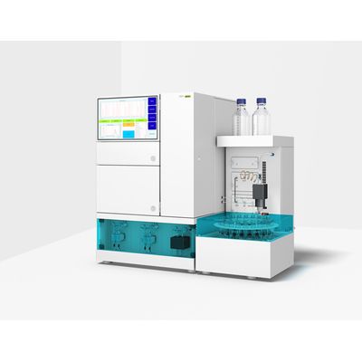 The integrated auto sampler can accommodate two standard or two deep well microtiter plates with 24 wells and a volume of 10 ml each or racks with up to 60 sample vials with a volume of 1.5 ml each.