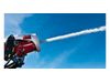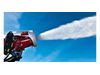 The TAF35 is a versatile tracked vehicle designed for firefighting. The extinguishing turbine has been mounted on a compact crawler vehicle. The turbine is fitted with a nozzle ring which atomizes water and extinguishing foam to form fine particulate matter. This water or water/foam particulate matter is distributed by a propeller. The spray action is variable, ranging from a mist which spreads over a wide area to a water jet with a remarkable projection range. Thanks to the integrated lifting function and the adjustable angle of incline, the extinguishing agent can be distributed over a wide area, and changes in wind direction can be immediately compensated.