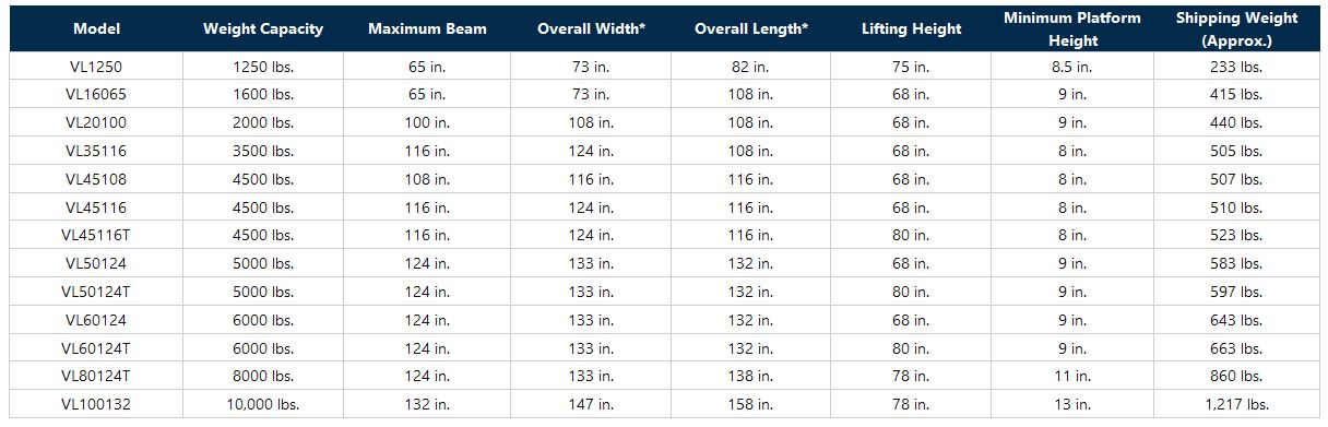 - Variety of lifting capabilities (1,250 lbs. to 10,000 lbs.)