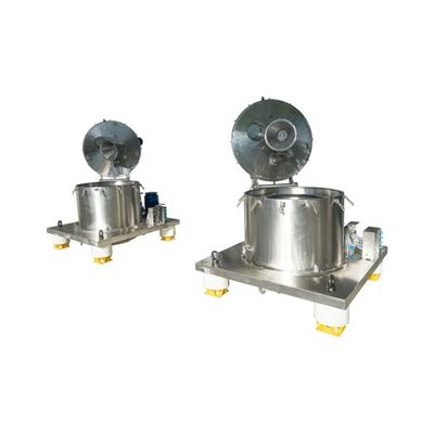 The vertical axis bottom discharge centrifuge TM is available in the standard version with fixed frame and openable cover or in the "GMP" version, with frame and cover forming one fully openable piece, meeting the requirements of the pharmaceutical industry (inspectable process area).