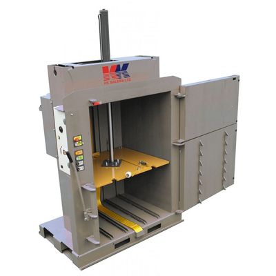 A mid range baler with easyloading for large size cardboard boxes. Bales up to 100 kg in cardboard. PLC panel with automatic compaction cycles, key lock E-stop and bale full light. Strap eject system for easy removal of bales. Retainer claws to reduce spring back of material in the bale chamber.