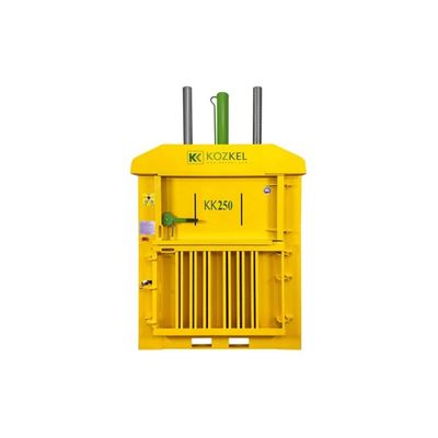 Strong and Stable baler; KK 250 baler press is a compact baler with high capacity and performance. Provides an ergonomic and safe working environment. PLC control panel provides a comfortable use. The bale size is optimized for transport and the finished bales fit on a standard EUR pallet. Ideal for industry and manufacturing factories, hotels, logistics warehouses, restaurants, hospitals, public institutions. Allows you to save space and working time. More stable and strong pressing force with double guide shaft. It allows you to generate income by compressing recyclable waste. Automatic Bale ejection (The bale is tipped out automatically) It provides a more effective and long-lasting outer coating with electrostatic powder paint. Special gripping barbs to prevent material from springing back.