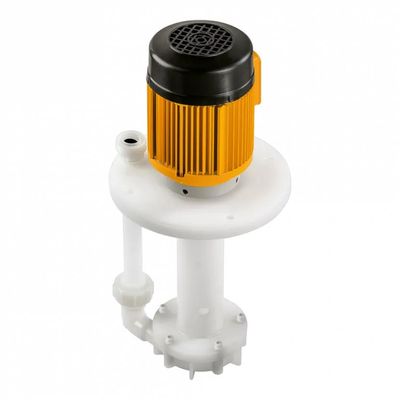 These durable and chemically resistant vertical plastic immersion pumps work in the standard version without seals and up to 95 °C. Optionally also available with shaft seal as vapour barrier. The T series features a vertical shaft extension that directly drives the impeller. The rotating shaft runs completely contact- and abrasion-free inside the housing (“cantilever” design). This design concept eliminates the need for shaft seals and additional bearings.