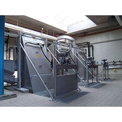 The STEP SCREEN® System is widely accepted and successful due to its function and easy-to-follow operation principle as well as the simple cleaning method without any aids (self-cleaning effect according to the counter-current principle). It is furthermore easy to maintain and able to handle extremely big screenings volumes whilst it also offers a high operational reliability. The motor linkage drive has been developed from the well-proven and patented link system. To the benefit of our customers we intentionally avoided difficult-to-maintain chain drives. With the linkage type we are able to master the occurring bending moments on the lamellas, especially with high water levels.