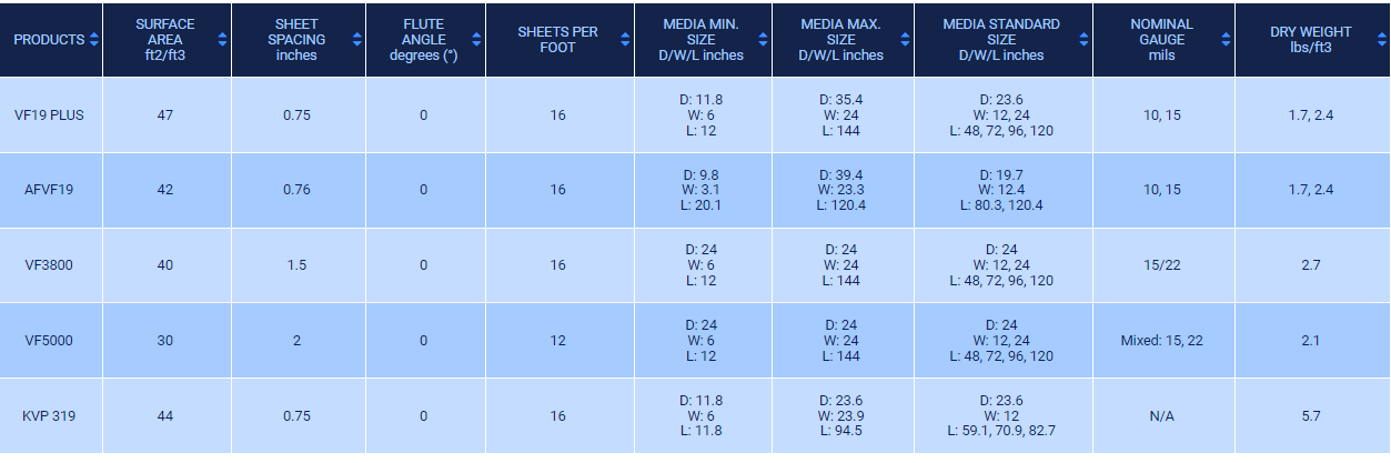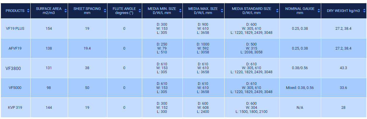 AFVF19 is ideal for metric counterflow cooling towers used for utility and industrial applications where surface waters are used for make-up. Tested extensively in an operating natural draft cooling tower serving a central station power plant, this unique fill features a vertical flute design with an engineered microstructure to laterally redistribute air and water for highly efficient thermal performance.