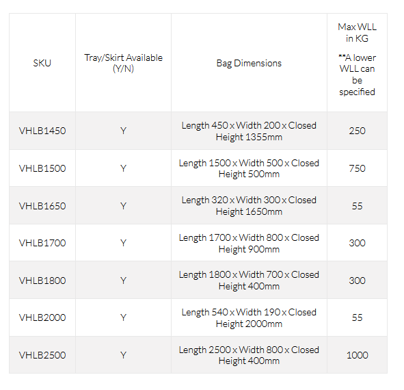 Our VHLB is designed to accommodate longer / taller items. With the option of lifting using the horizontal or vertical slings, it ensure’s the bags contents can be lifted safely and offers versatility. Like all of our lifting bags, the VHLB range is certified to safe Working Load Limit’s (WLL) which will be displayed clearly on the front panel to ensure capacity is not exceeded.