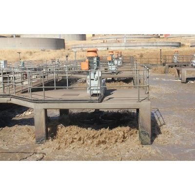 Vertical shaft, slow speed aerators are ideal for the bacterial oxidisation of effluent via the transfer of oxygen from the atmosphere. The aerators provide the necessary turbulence in order to maintain homogenisation and mixing between the live medium, the polluting elements and the water thus resulting in oxygenated sludge. Oxygen transfer rates are proportional to the power absorbed at the aerator shaft and this, in turn, is governed by the size, speed and immersion of the turbine. In addition to a fixed installment, the vertical shafts can be positioned on floating pontoons.