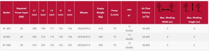 Designed for vertical trellis with inter-row spacing up to 3 meters. Hot dip galvanized chassis and conveyor. The air blast is directed backward to improve penetration into the leaf mass and to prevent excessive accumulation of dirt on the machine.