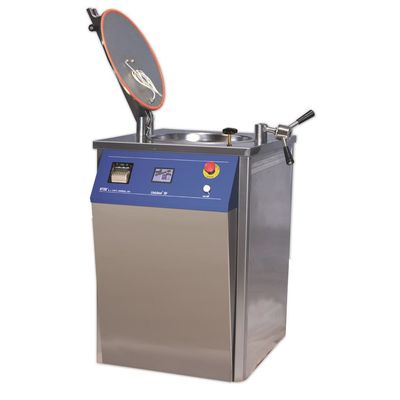 75, 127 and 157 liters. Stainless steel inside and out. Analog temperature/pressure setting (optionally electronic). Safety systems for pressure, lack of water. Programmable sterilization cycles with automatic operation. 3.5” touch screen. Digital display of pressure and temperature.