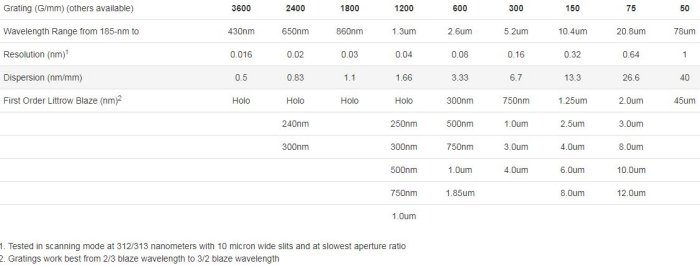 - Wavelength Range: refer to grating of interest for range