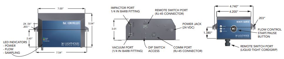 - LED Indicators: Power, Flow, Sampling