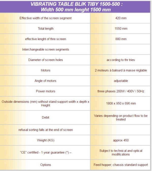 BLiK - Model 1500-500 TIBY Series -Vibrating Table