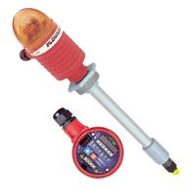 Level Switch System with Compact Relay Controller. General purpose switch package providing a complete solution for high level spill prevention with a fixed level switch point and 10A compact relay controller for pump or valve actuation. The Vibration Level switch has an optional flash alarm which visually alerts high level conditions that require immediate attention. The product is typically selected for pressurised and/or highly corrosive bulk storage, day tank and waste sump applications.