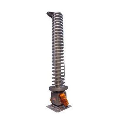 This type of vibratory elevators are manufactured in standard sizes of 500-700-1,000-1,200 and 1,500 mm in diameter depending on the flow rate to be lifted. The elevation heights exceed 9 meters. The surface needed to raise a product to 9 meters high can be only 1 square meter.
