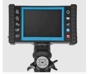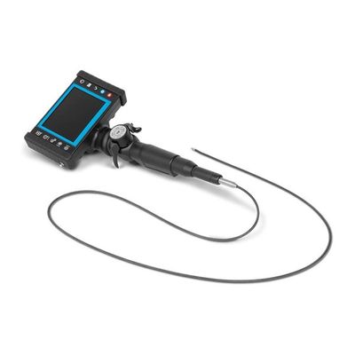 This VIDEOSCOPE-XT inspection system is a full set, with a built-in monitor and integrated design. These units feature a great color CMOS camera chip in the tip of the probe, which will provide you with a small bend radius to access tight areas or corners. The camera chip has a 90-degree field of view, 4-way tip articulation, with 360-degree rotation, controlled via 2 knobs on the ergonomic handle for easy one-handed operation. The extra powerful LED light is located in the handle, so there is no chance of a spark in explosive environments, and it has 3-step intensity control. The live image is displayed on a large 5" color TFT monitor, with image and video capture to an SD memory card. These units also feature digital zoom, text input for captured files, comparative measurement, and a rechargeable battery for portable use.
