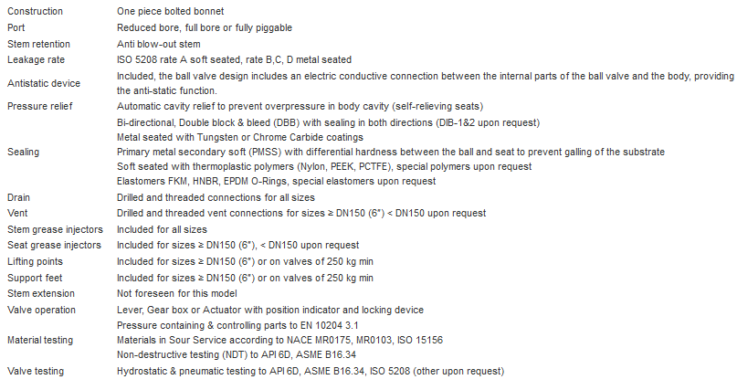- Seat: RPTFE/DEVLON/PEEKMTON/METALTO METAL