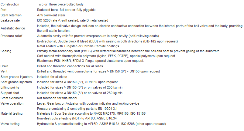 - Ball and Stem Material: ASTM A182 F6A/17-4PH/XM-19/A182 F51/A182 F53/A182 F55