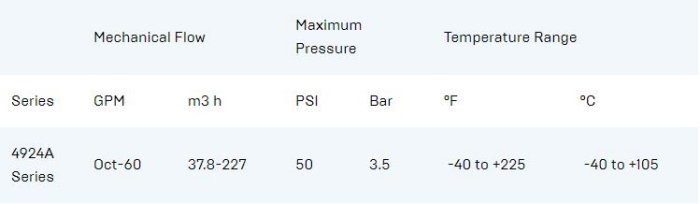 The 4924A Series positive displacement pumps offer safety, reliability and high efficiency in refrigeration ammonia recirculation applications. The 40924A Series provides reliability, safety and efficiency. A double mechanical dynamic shaft seal located between the bearings ensures minimum possible shaft run-out, with a pressurized barrier fluid system and O-ring type static seals is used to achieve the highest level of safety. Reliability is ensured by slow speed operation and low differential pressures, which maximize bearing and seal life. The internal gear pump technology provides a more efficient solution compared to centrifugal pumps.