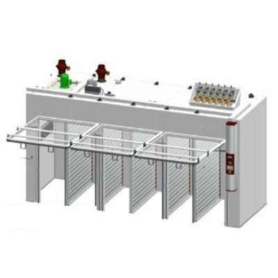 Power in 400V/3Phase/60Hz – 2,87kW. Power trolleys 90-305V/1phase +N/50/60Hz – 600W. Ø8mm push-in Humidification RO water – 7L/h @ 1,5 Bar. Ø22mm push-in Cooling water in/out – 4,5kW chilled water cooling. Ø160mm Inlet clean air – 600m3/h