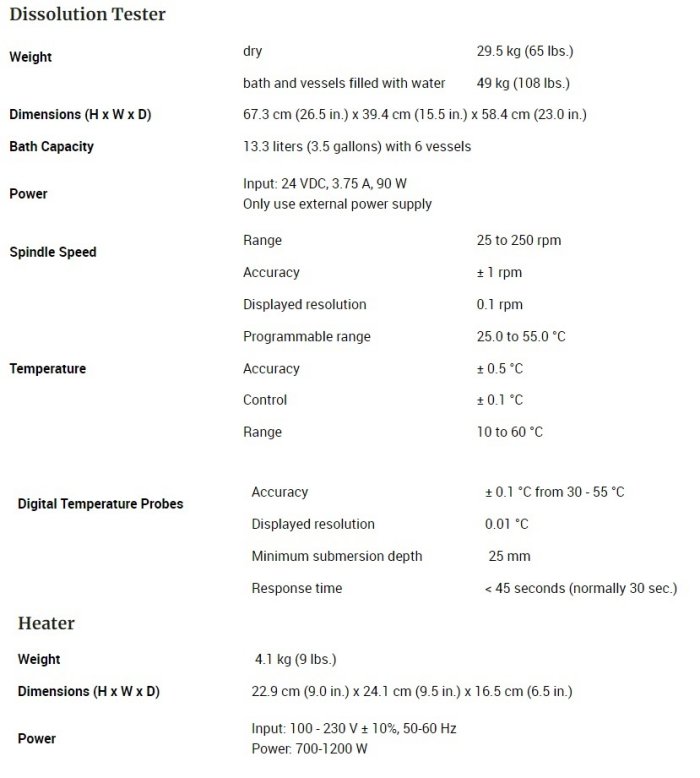 - No tools or adjustments needed to switch among USP App. 1, 2, 5, 6, and 150 mL and 250 mL small volumes