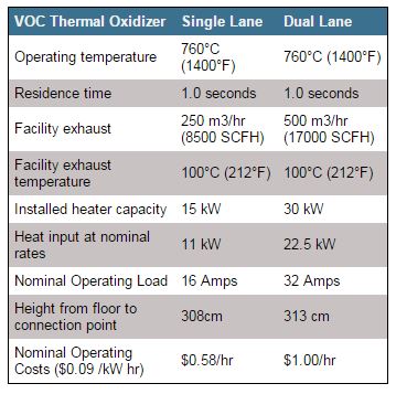 - Best in class (99% or better) destruction of VOCs: