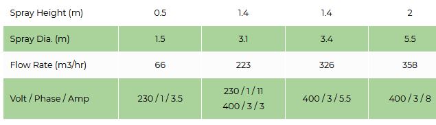 The Volcano II & Shasta series aerators are an ideal option if a minimal surface display is required but efficient aeration is of importance. These aerators have high LPM pumping rates and oxygen transfer capabilities. Options to add lighting for dramatic nighttime displays are also possible with these models.