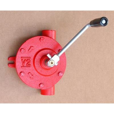 Full rotary action hand pump, self-priming, fully reversible, one revolution 360°. Cast iron body, GB version rotor made of bronze and GL version rotor made of cast alloy.