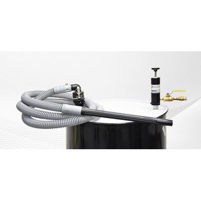 The Dual Force Vac System is a convenient and versatile solution for liquid material handling and spill clean up. Using powerful Transvector technology, the Dual Force Vac Drum Pump can either fill or discharge a 55 gallon drum in under two minutes. It switches easily -- with a 1/4 turn of a knob -- from fill to discharge mode. And the Dual Force Vac can handle viscous liquids and particulates. Quiet and safe, the Dual Force Vac is air-powered with no moving parts, meaning no motor burn out and no shock hazard. It quickly installs on a 55 gallon drum and comes with a 10 foot hose and nozzle.