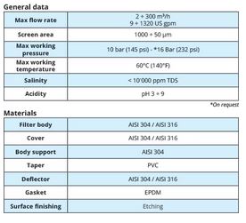 VORTEX filters are centrifugal separating filters (hydrocyclones) with stainless steel body, especially designed for water containing sands or particles with specific weight greater than water (γ>1). VORTEX filters can remove up to 99% of sands and/or particles with dimensions greater than 75 µm and up to 65% with dimensions greater than 50 µm. VORTEX filters are designed to reduce head losses but maintaining the best separating efficiency, work continuously, do not contain filtrating elements or moving parts, can be inspected and the bottom drain can be equipped with a manual or automatic valve.