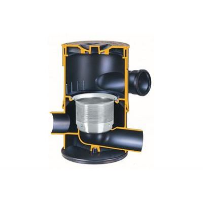The dirty water outlet to the storm drain and the filtered water outlet to the storage tank can be freely rotated. They can be turned horizontally at a different angle from the inlet for flexible adaptation of the filter unit to the existing piping at the site of installation. Using the optionally available extension tube, it is even possible to connect the vortex fine filter to pipes that are installed deep below ground level.