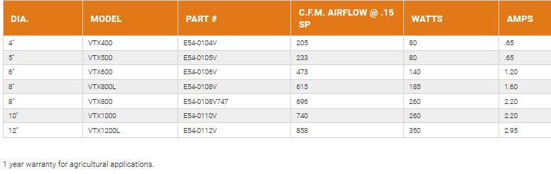 VORTEX POWERFANS is all about performance, reliability, and quality all wrapped up into one package to ensure peace of mind for years. GREAT CHOICE for positive pressure systems.