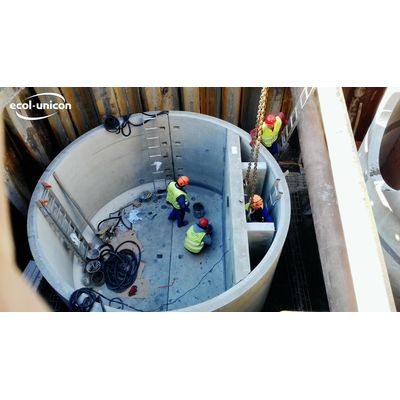 In order to adjust the location of the settling tank slab to ground elevation, there is an additional top element used made of concrete rings corresponding to the diameter of the settling tank`s chamber. When the sewer system is located deep in the ground, a reduction-slab and a chimney made of ID 1000 rings can be used.