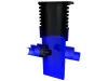 The Vortex Flow Control Chamber VFCC300 is an integral component of the Vortiflo range, designed for managing the flow of stormwater within small to medium attenuation systems. This pre-assembled chamber offers a diameter of 300mm, optimized for flow rates up to 2.1 liters per second, contingent on design head specifications. Its construction includes a rotational molded chamber base and accommodates connections via 110mm or 160mm main channel sockets and additional 110mm side inlets positioned at 90° and 270° from the outlet. These side inlets are initially sealed but can be utilized as needed, offering flexible configuration for specific site requirements. The VFCC300 specifically addresses the need for effective stormwater flow control with precision, ensuring minimal environmental impact and operational efficiency. The larger models within the Vortiflo series support greater flow rates and are suitable for systems requiring taller design head tolerances.