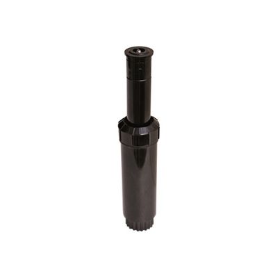 Ideal for green urban areas where there is risk of vandalism, or where vehicle wheels may run over the sprinklers. In urban use, this sprinkler may have concret arounds its perimeter. Used in both, garden and greenhouse irrigation. Small green spaces, areas with shrubs and low trees. Dimensions:. Height: 10 cm. Width: 3 cm. Weight: 58 g. Units per box: 100. Options:. Telescopic riser for ground height adjustment. 1 m high PVC tube for installation with adapter in areas with bushes and tall plants.