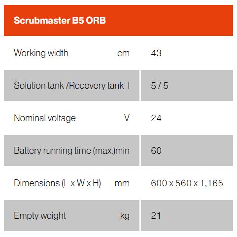 The new lightness: The Scrubmaster B5 makes surfaces accessible for machine-assisted cleaning that could previously only be reached with a hand mop. And it does so with great mobility, excellent manoeuvrability and little physical effort on the part of the user. Thanks to the innovative Hako-Delta-Cleaning-System® with orbital drive, the operator can determine the working speed at any time and thus precisely approach narrow areas and corners. And the flat cleaning head is designed in such a way that cleaning close to walls, deep into corners and under furniture and substructures with an underclearance of as little as 120 mm is possible.