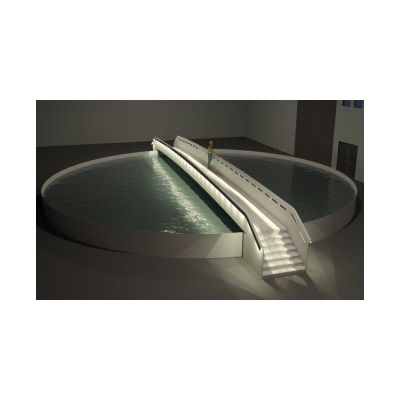Due to a high demand from our clients Highcomp has designed, built and tested a composite bridge with the following advantages: Beautiful visual design: illuminated handrails, large side panels to display company logo.