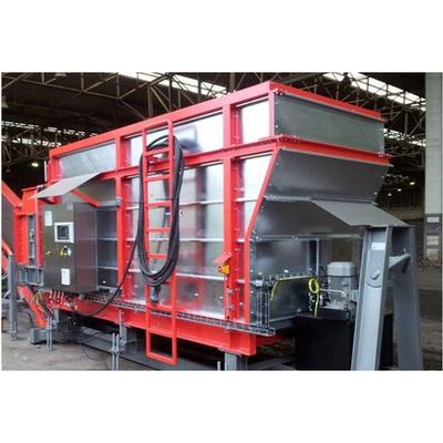 The Walking floor bunker enables the regulation of system feed with a variety of input streams. To balance the material flow, a dosing roller can be integrated on the discharge side. The lamella system convey the material toward the dosing roller. The material is made loose by the steel noses on the dosing roller and coveyed to the next belt conveyor. The throughput can be adjusted by the frequency converters of the two motor drives. The lamella system is designed with overlapping wearing metal sheets and guide rails of hard plastic on the bottom face and on the sides. The lamella system is moved in triple groups by means of double-acting hydraulic cylinders.