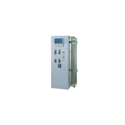 Stainless steel base frame with hinged plastic front panel to house the instruments and controls. Special inlet filter with 5 pm filter cartridge, high pressure pump, rotary-vane type, high performance wound module(s) with PA/PS composite membranes in GRP pressure vessel(s) with inliner. Valves and instruments including solenoid inlet valve, feedwater pressure switch, permeate and concentrate flow meter, vibration-resistant pressure gauges for pump and concentrate pressure, stainless steel valves for adjustment of permeate and concentrate flow rate.