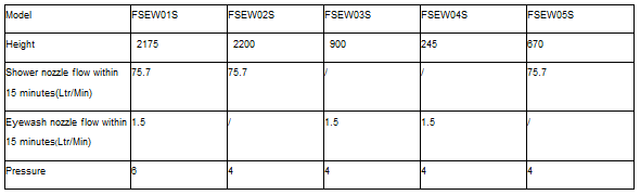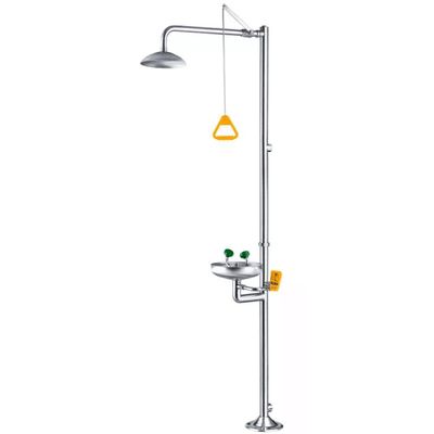 The Emergency Eyewash Shower is widely used in medicine, chemical, petrochemical,elect ronics , semiconduct etc.. It is also suitable for emergency and safety devices in work areas and laboratories. Features: • It can be used for flushing of the body, eyes and face at the same time. It can protect the personnel safety of the whole area. Install the floor draining facilities in the site to drain the flushing water promptly. • Starting device: triangular pull ring, pusher or pedal • Water pressure: no less than 210kPa (30psi, 2bar, 2.1Kgf/cm) • Water flow: higher than the standard of 75.7LPM (20GPM) • Comply with ANSI Z358.1-2014 requirements